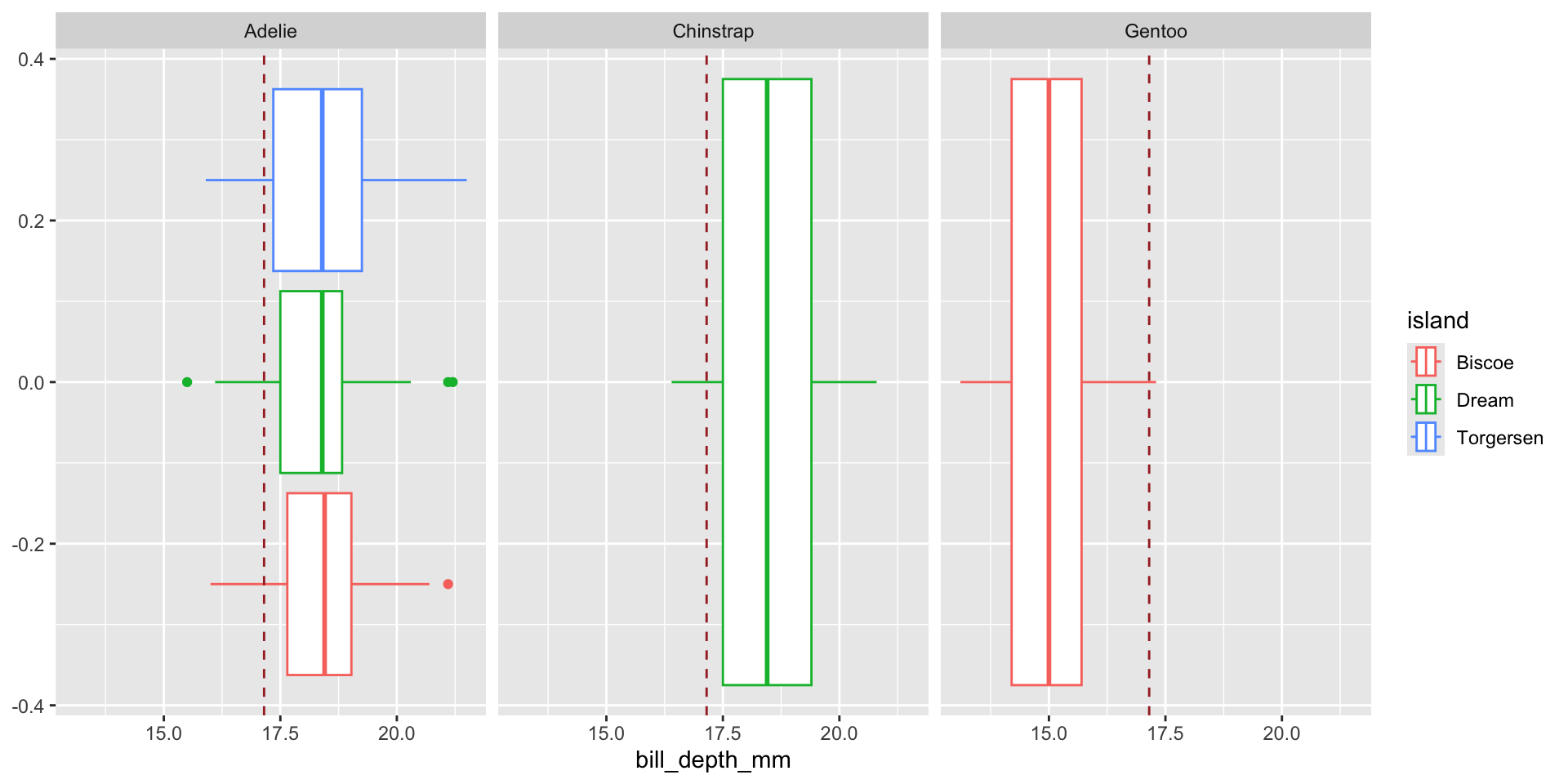 Try to make a boxplot of the penguins bill_depth_mm color it by island.