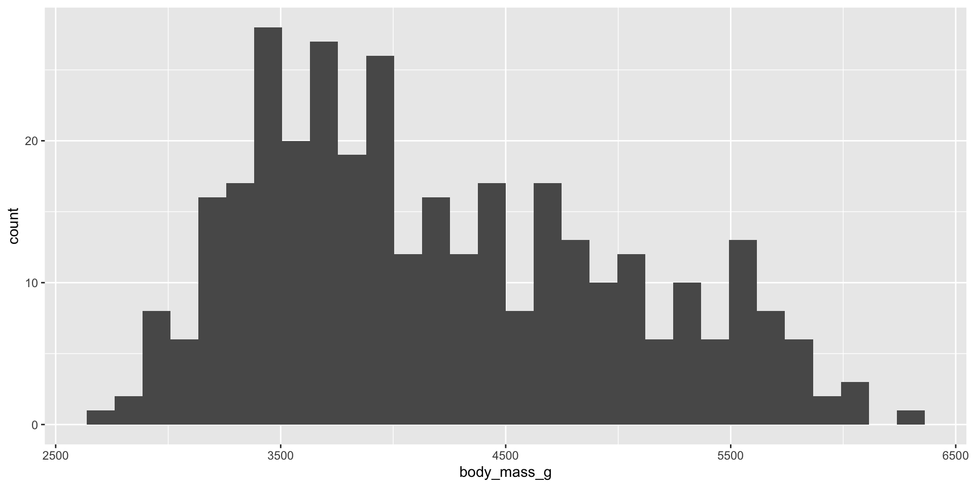 Copy some code above as a template and try to make a histogram of body_mass_g.