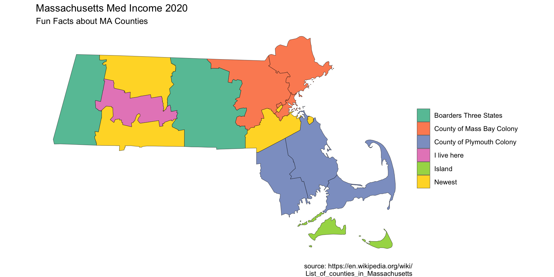 geom_sf(data = bind_cols(mass_med_income, fun_facts), aes(fill = County )) +