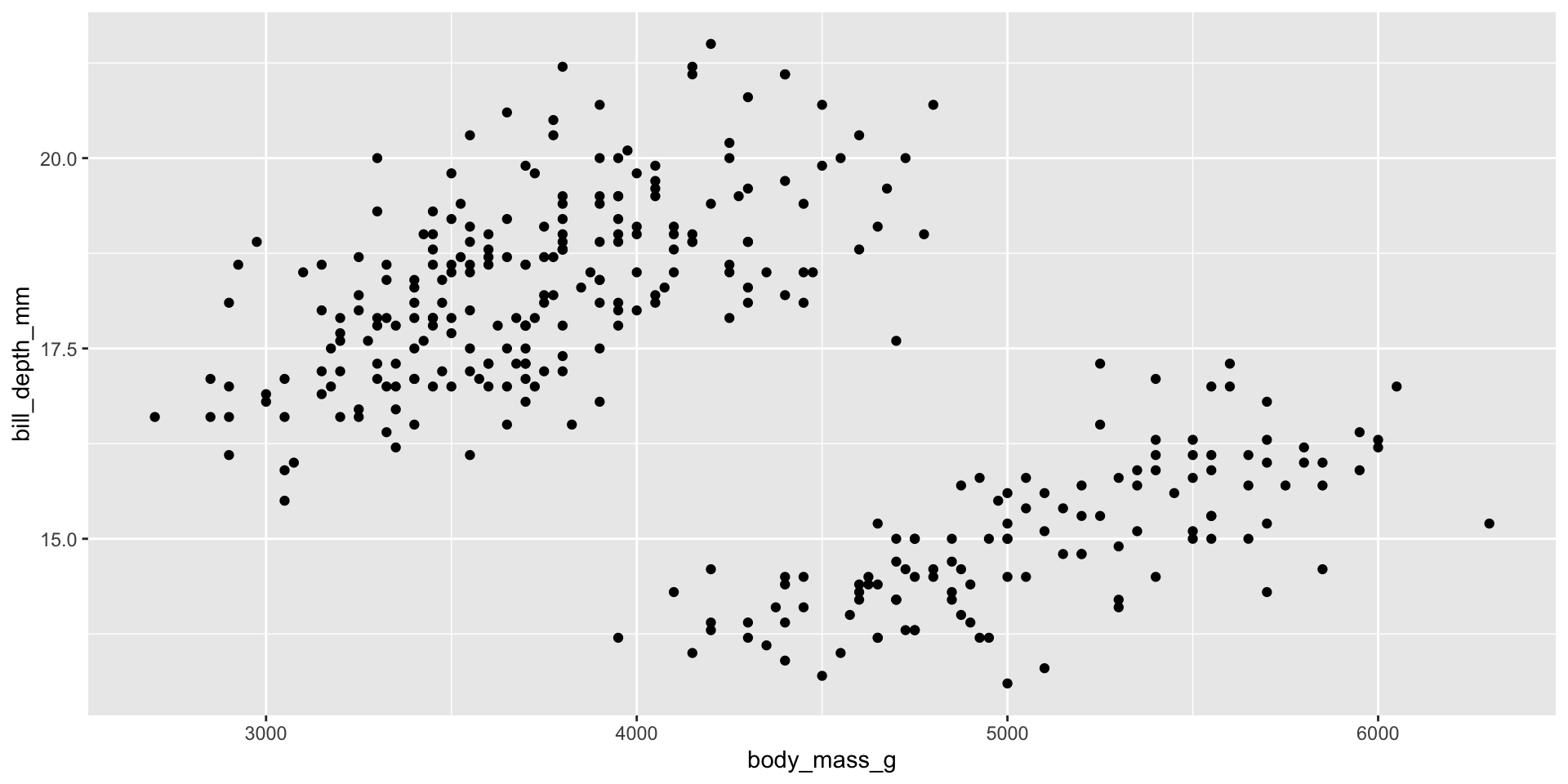 Below is a scatter plot of body_mass_g vs bill_depth_mm.