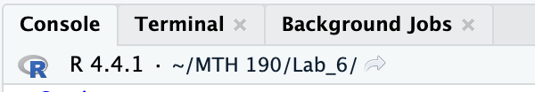 Here R is looking for files in my /MTH190/Lab 6 folder