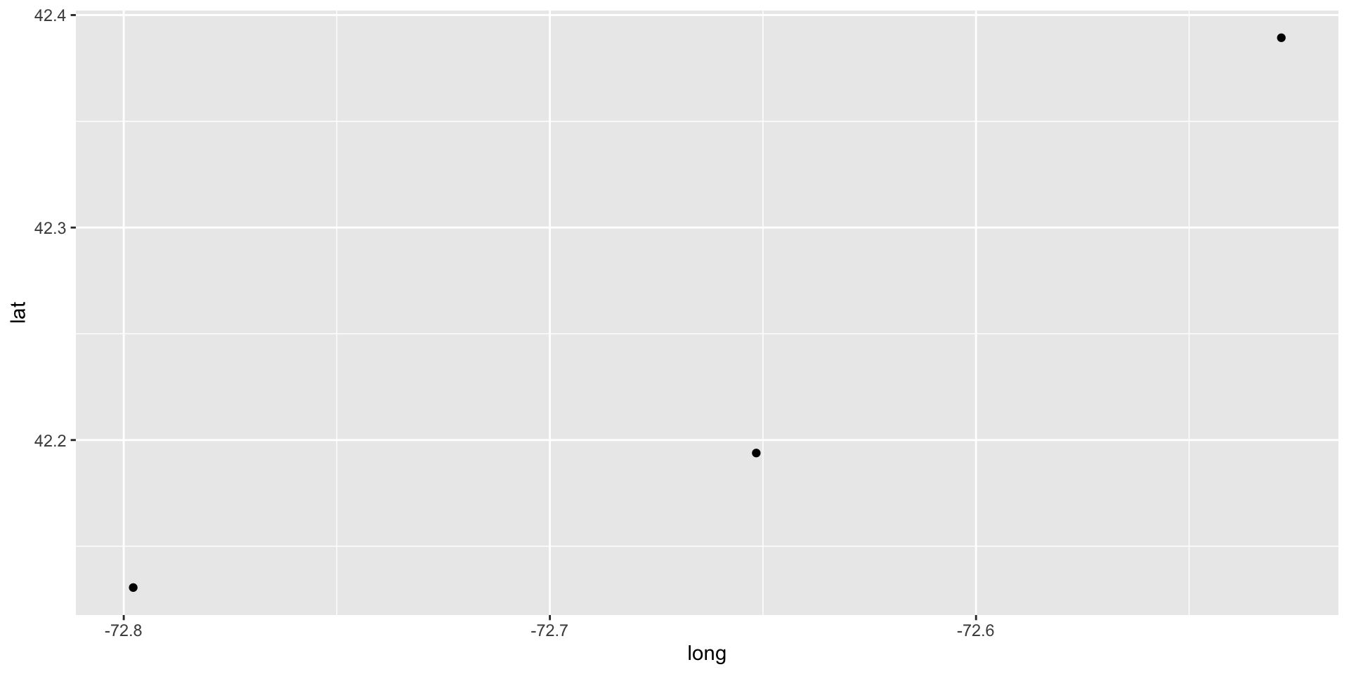 addresses<- tibble(address=c("University of Massachusetts Amherst", "577 Western Ave, Westfield, MA 01085", "Holyoke Community College")) |>