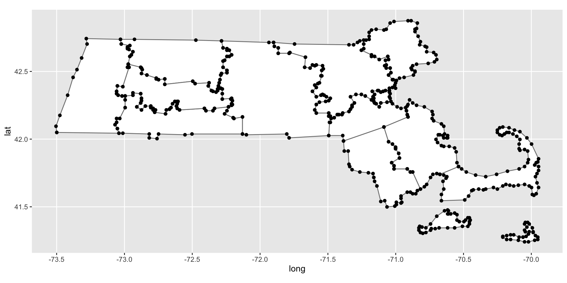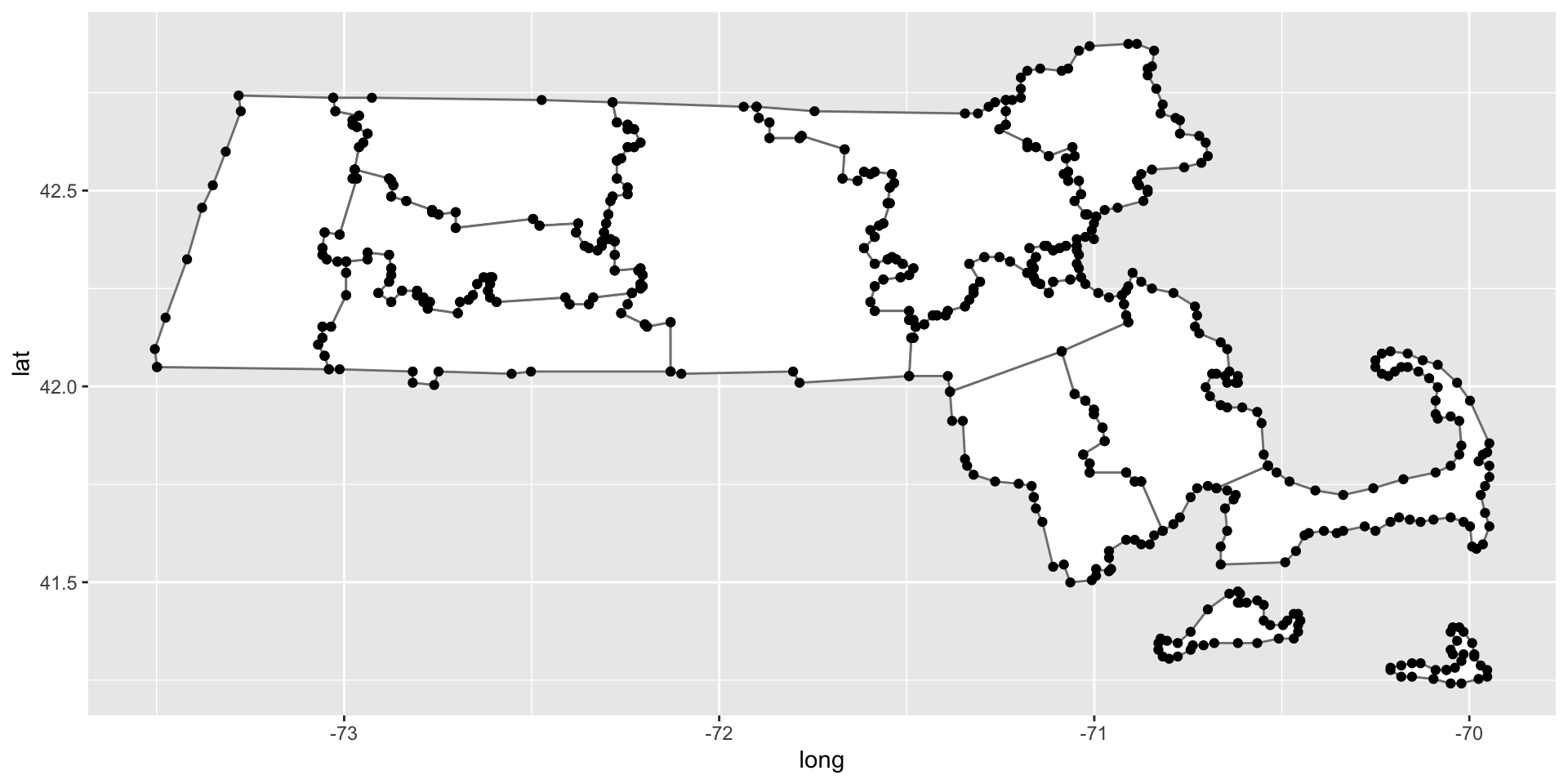 Notice there are a lot of points for barnstable. Those are the vertices of a polygon. Let’s draw the polygon with the points.