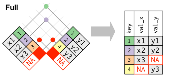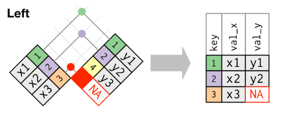 left_join() returns all rows from flights even if there are no matches in airlines. If no match then NA. It returns all columns from both.